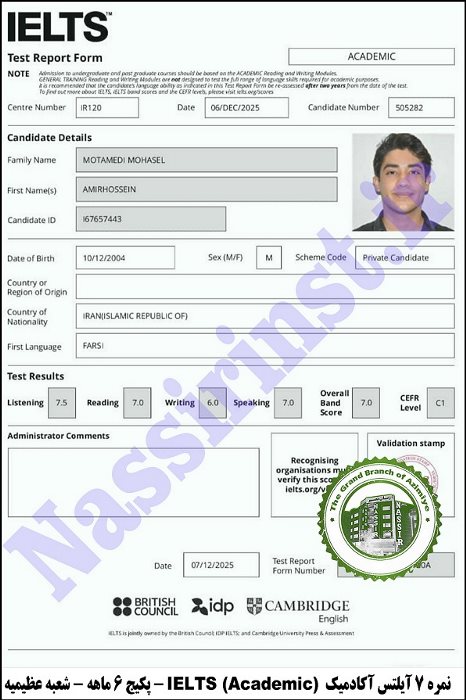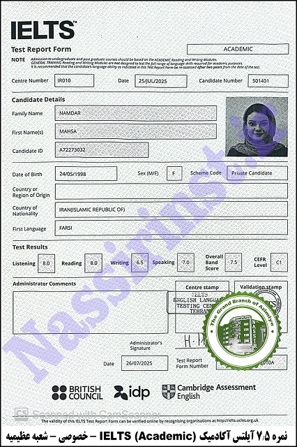 كسب نمره ٧.٥ آيلتس در نصير مهرشهر