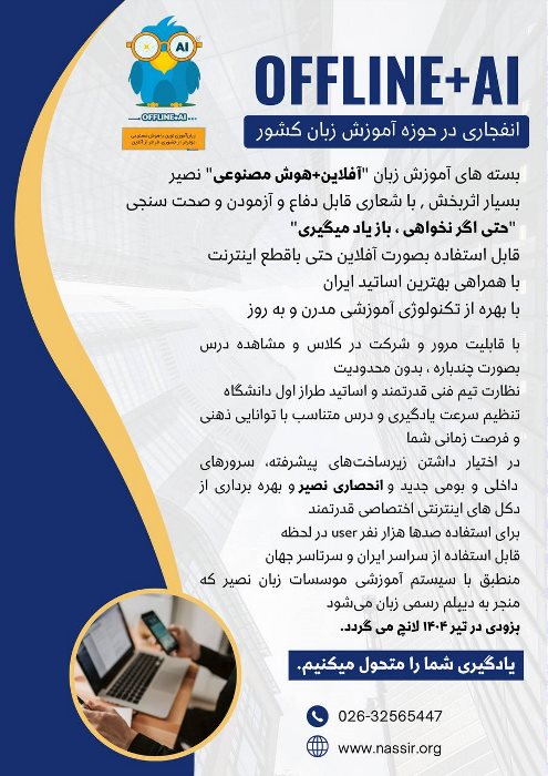 © 2025 - کلیه حقوق این پورتال متعلق به مؤسسات آنلاین و حضوری زبان نصیر میباشد. نسخه 1404.4.11.0